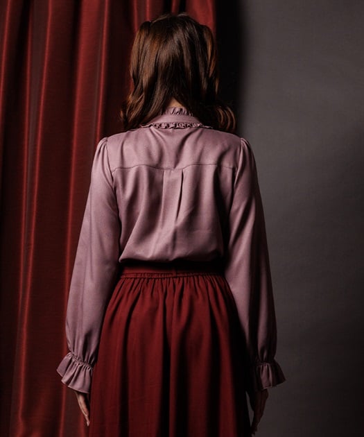 真っ白のブラウスよりも、優しい印象の生成りなどの落ち着いた色のブラウスを合わせると、統一感も出てよりクラシカルな雰囲気になります。