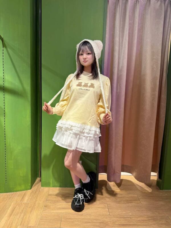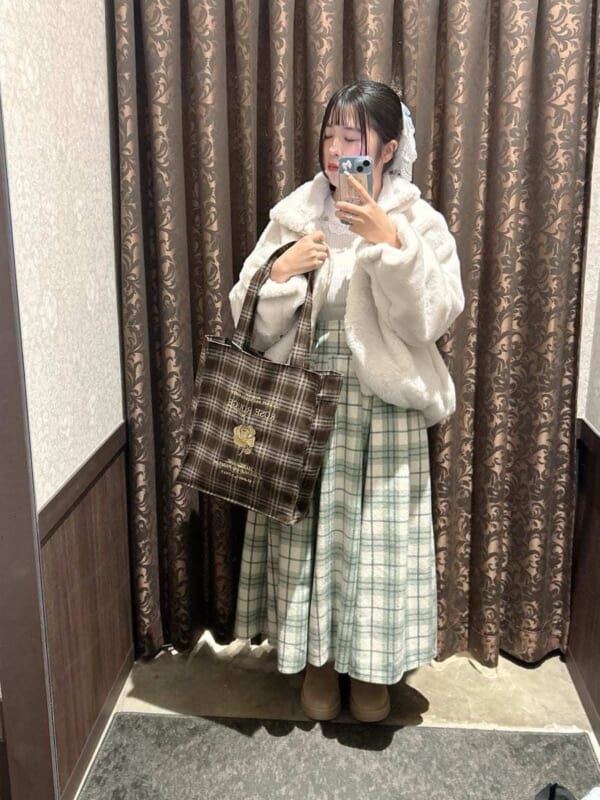 スカートは起毛で寒い冬にもピッタリ。