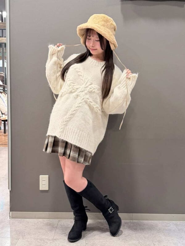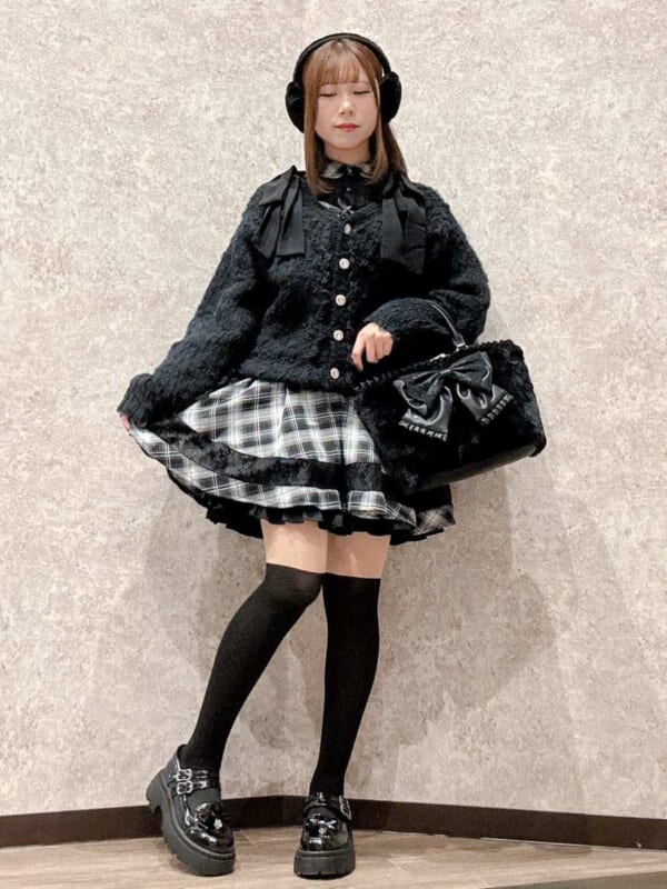 ふわふわリボン編みニット×ファーバケハ