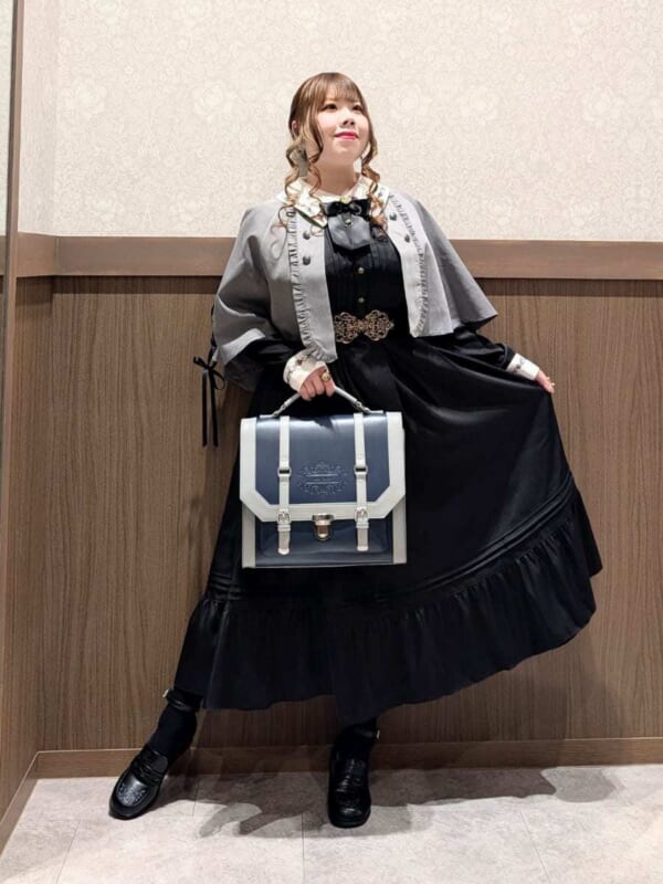 W釦レースアップケープ×リボンセット刺繍ロングワンピースを使った、お出かけコーデです♪