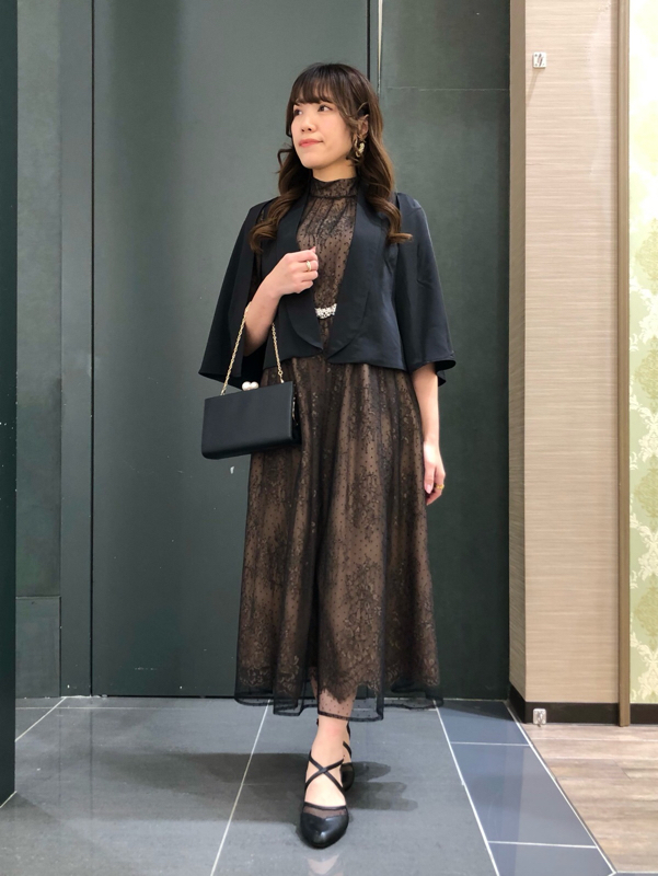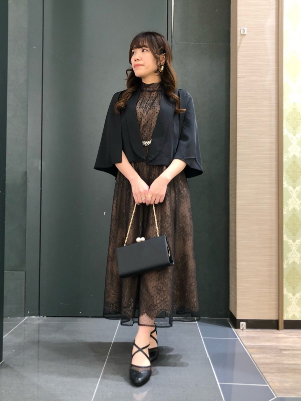 ケープボレロ風ジャケットを合わせれば、さらにフォーマルにまとめられます♡
