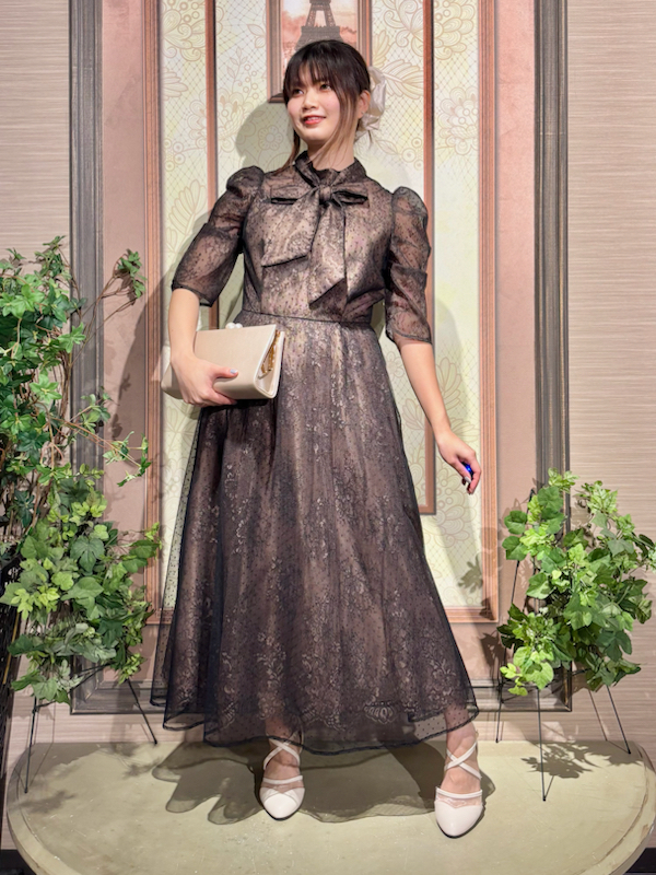 いずれもフォーマルに近い上品さを感じられる、レースの施しがある服や光沢のある素材、型などを意識しましょう。華やさのあるワンピース
