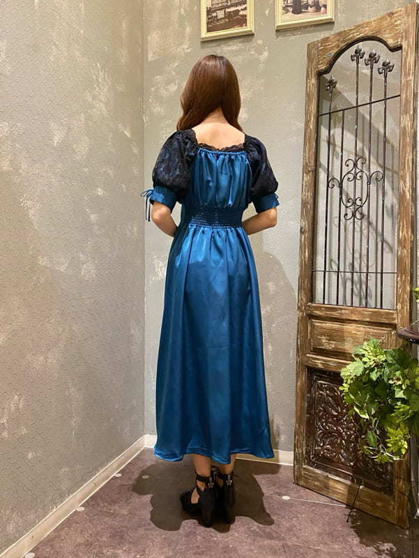 上上品な光沢感が魅力のヴィンテージサテン素材を使用した、存在感のあるワンピース。