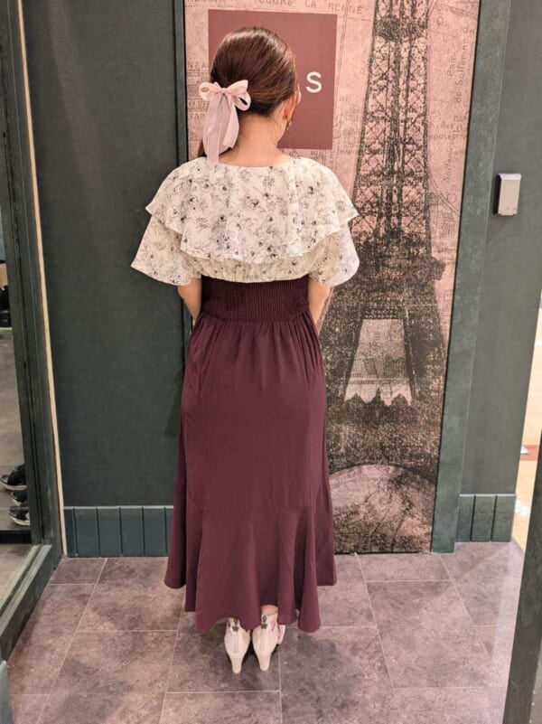 また、トップスとボトムスで分かれた服装も可!スカートが苦手な場合は、パンツスタイルでも問題ありません。