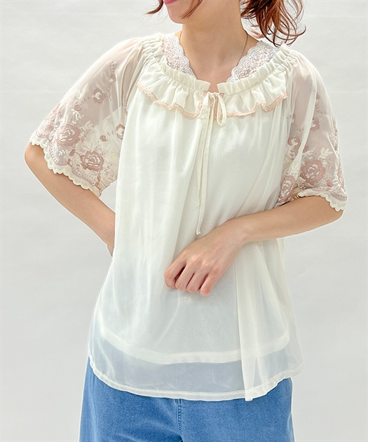 繊細な花柄とチュールの組み合わせがコーデをさりげなく華やかに♪