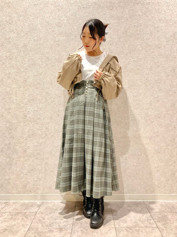 秋らしいスカートも相まって、これからの季節にピッタリのスタイルになります♪