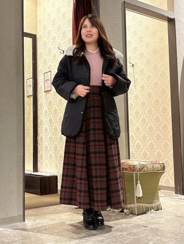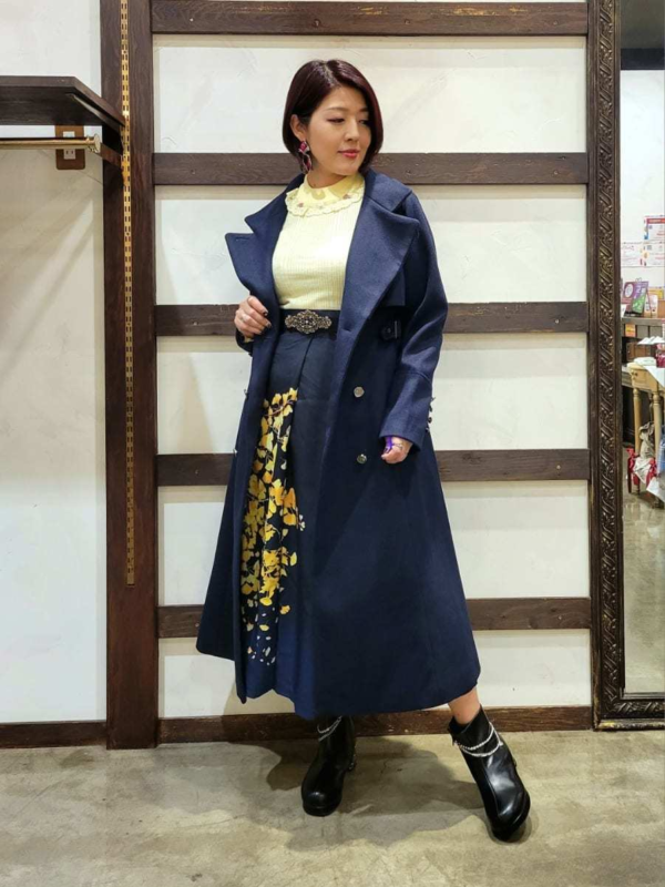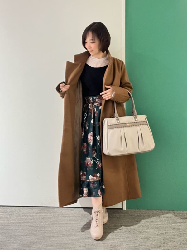 ロングコートを合わせると柄物スカートにも挑戦しやすいので、迷っている方は是非お試しあれ◎