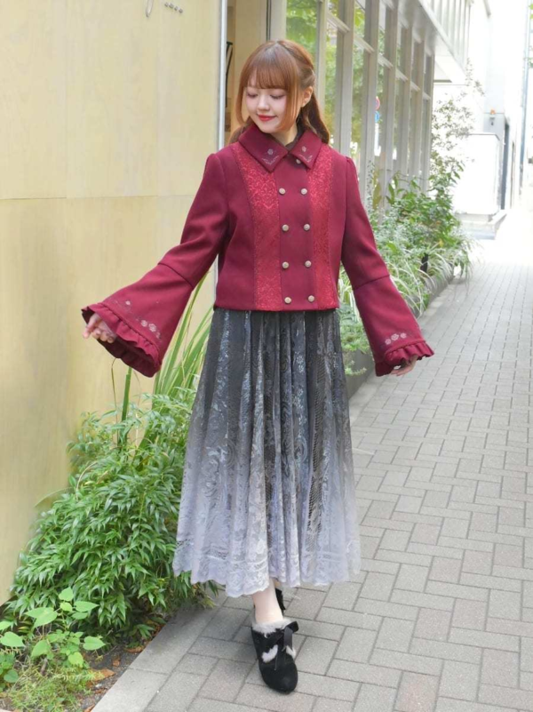 刺繍入ジャカード切替コートは、刺繍とお袖の広がりが魅力のコート♡