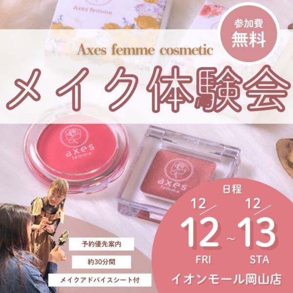 【イベント】12月13日(土)&14日(日)イオンモール岡山店にて、新作コスメのメイク体験イベント♪