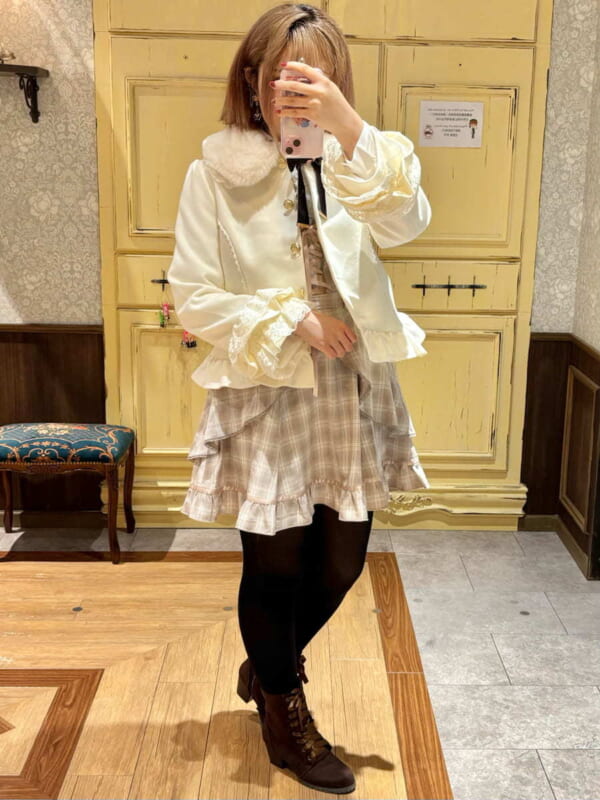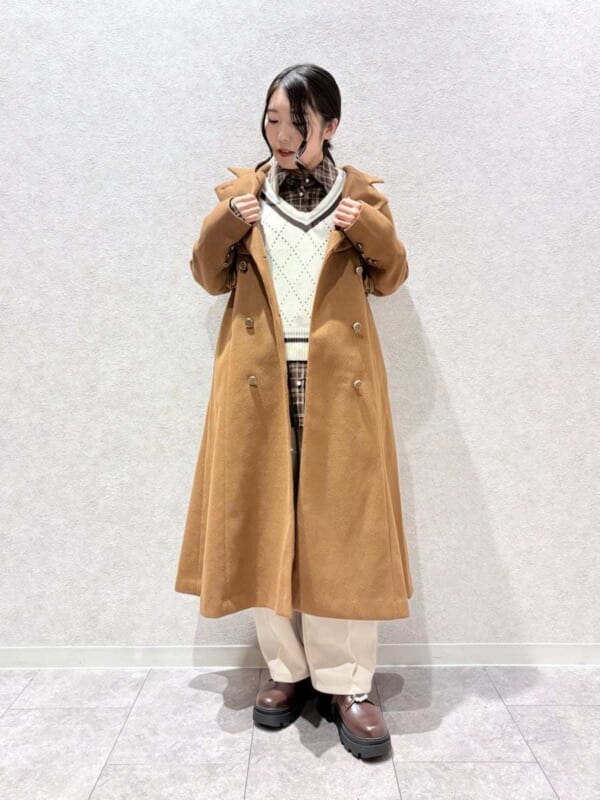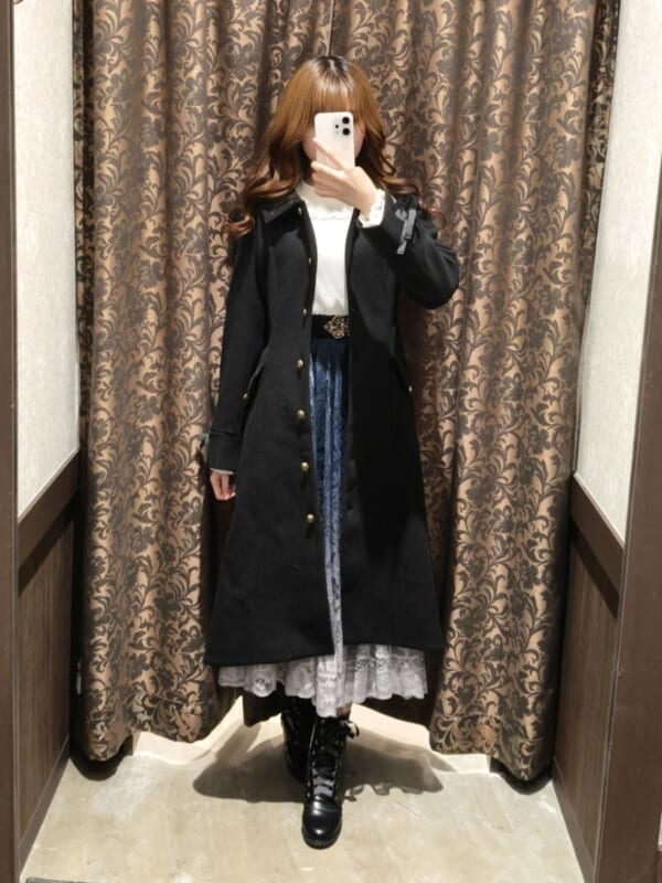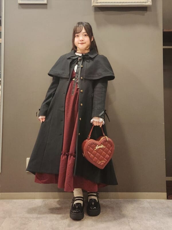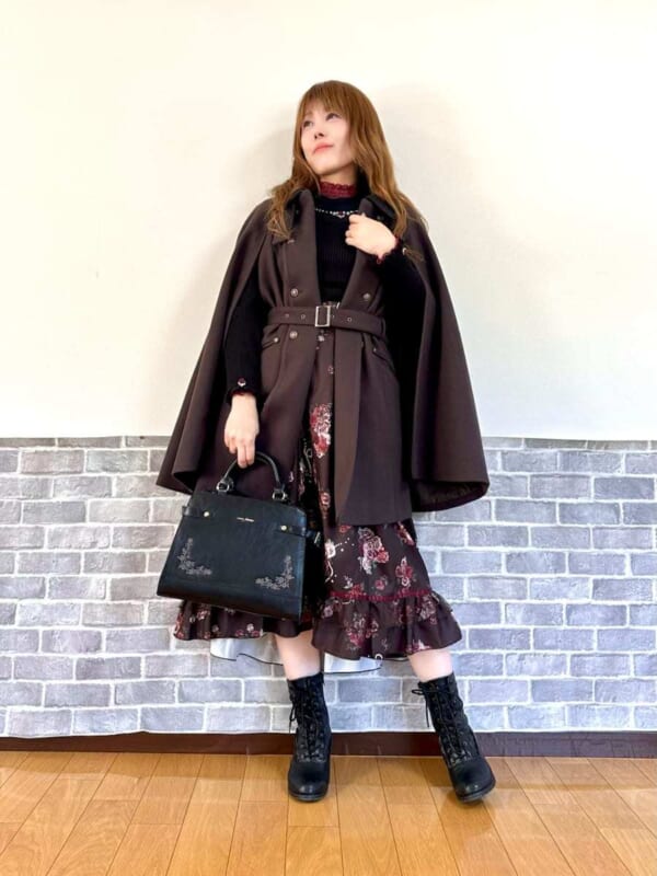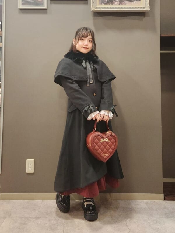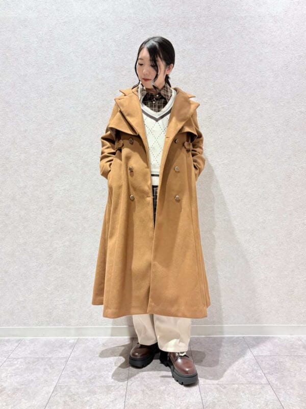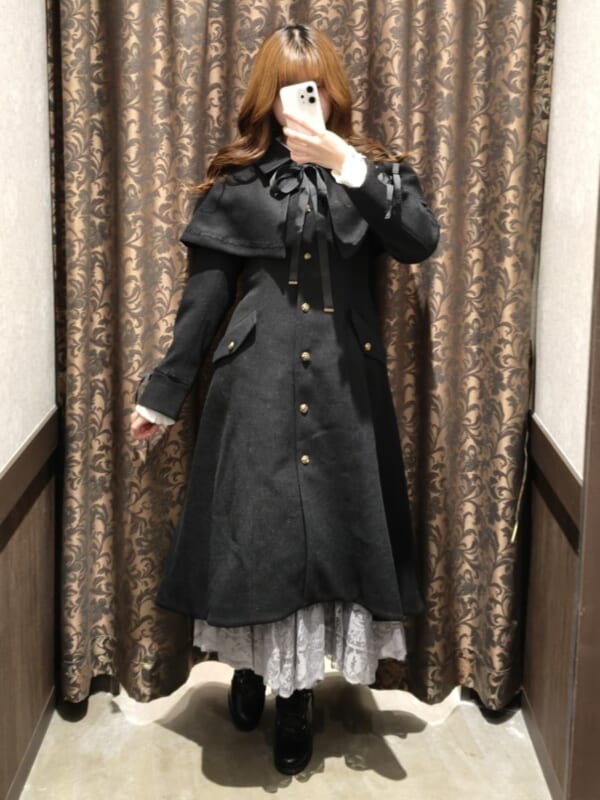 ケープコートのフロントをナポレオン風にアレンジして中のコーデも楽しめます♪