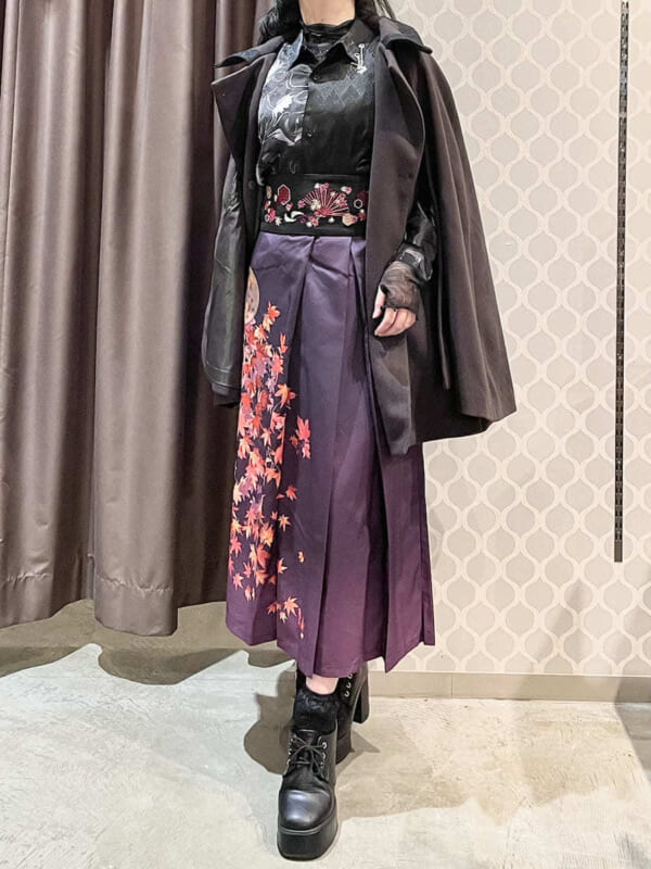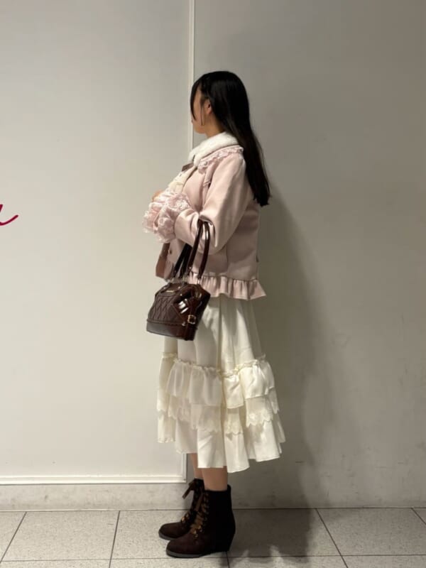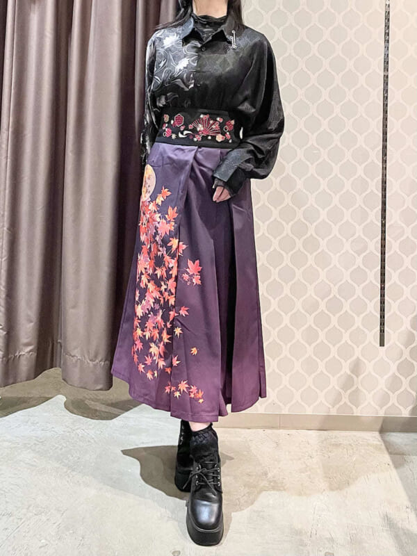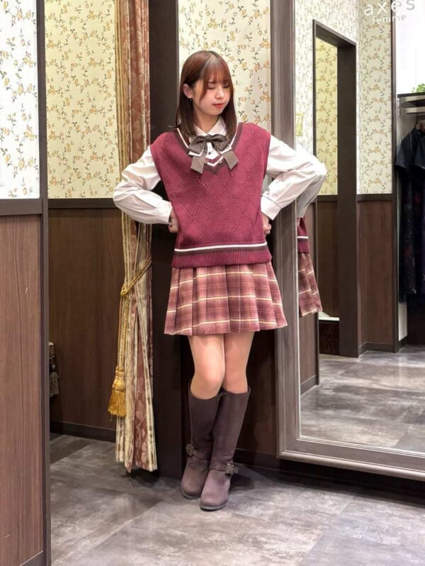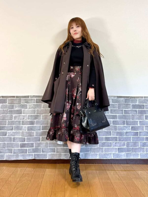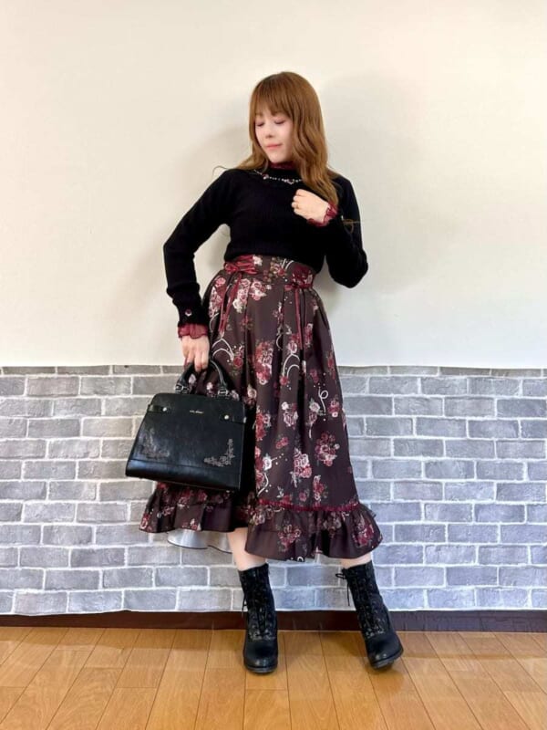 ローズ・オン・フルールのスカートは差し色をワインカラーにして大人っぽくまとめました◎