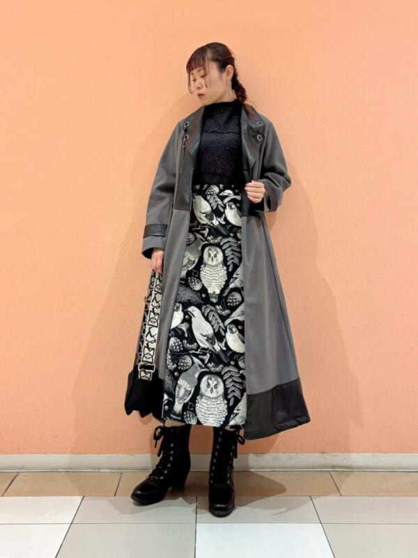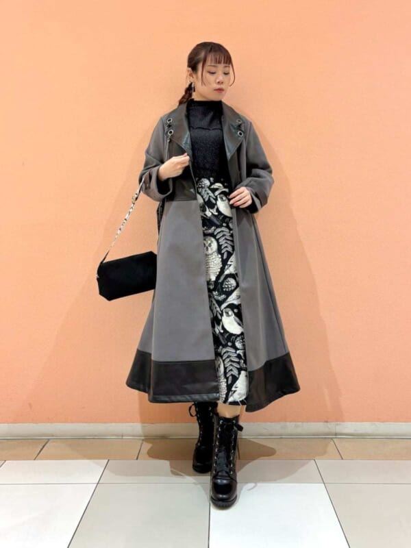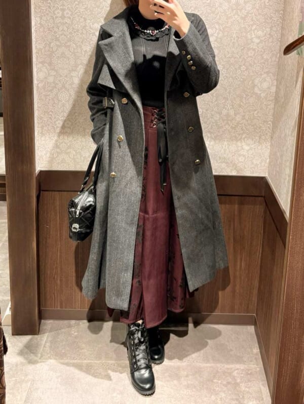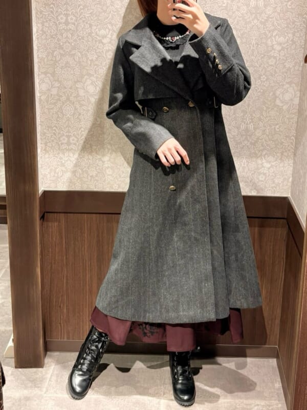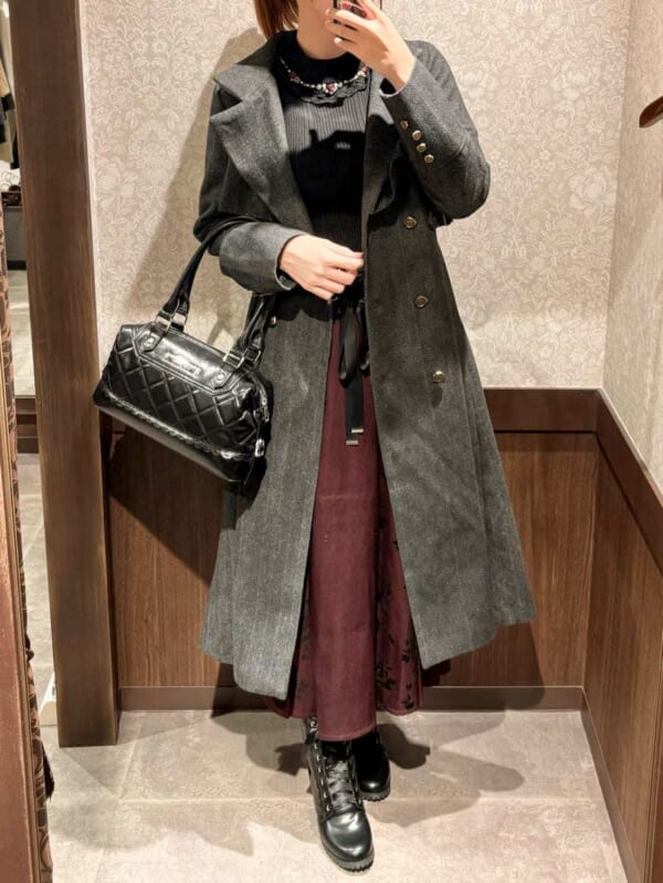 落ち着いたグレーのロングコートは、どんなコーデにも合わせやすい万能アイテム♥