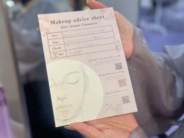 そして、体験会に参加してくださった方には、その日施させてもらったメイクを書いたレシピシートをお渡ししています。