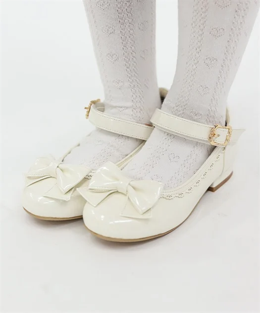 バックリボンハイソックスとエナメルリボンパンプスを合わせて可愛さと上品さをプラス♡