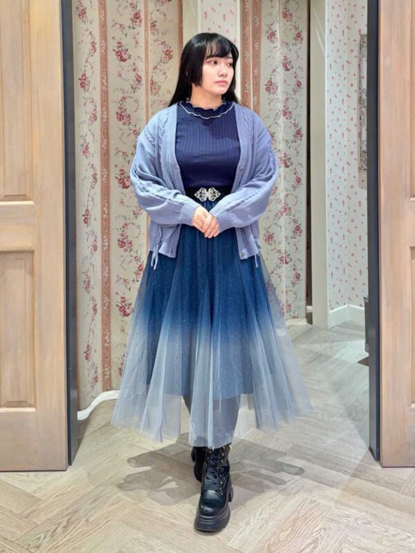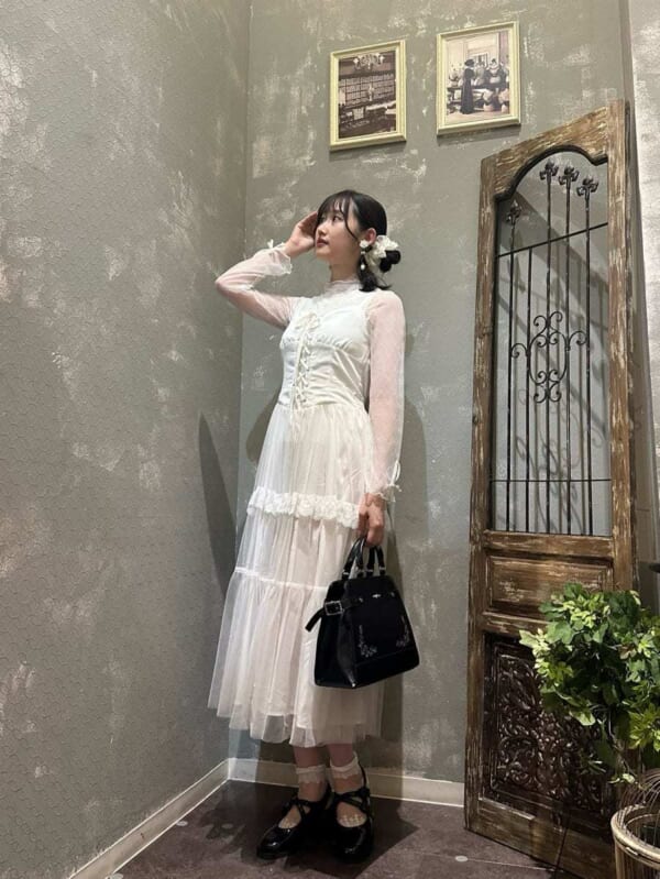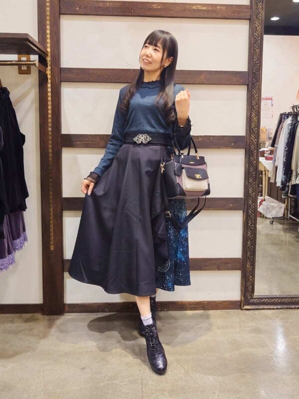 同じcollectionのレースフリルサーキュラーSK&サス付ハイウエストロングSKと合わせたスタイリングがおすすめです♪