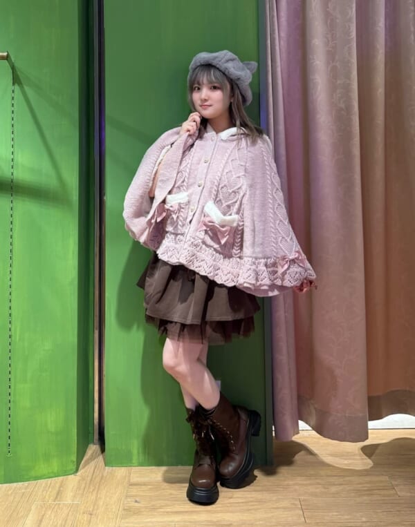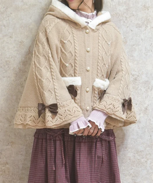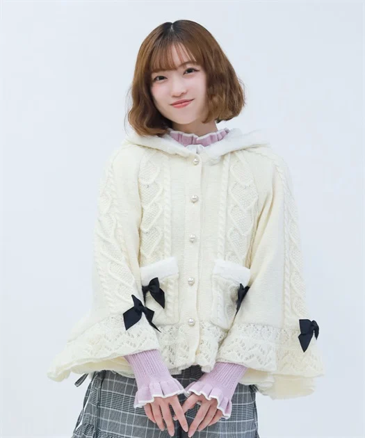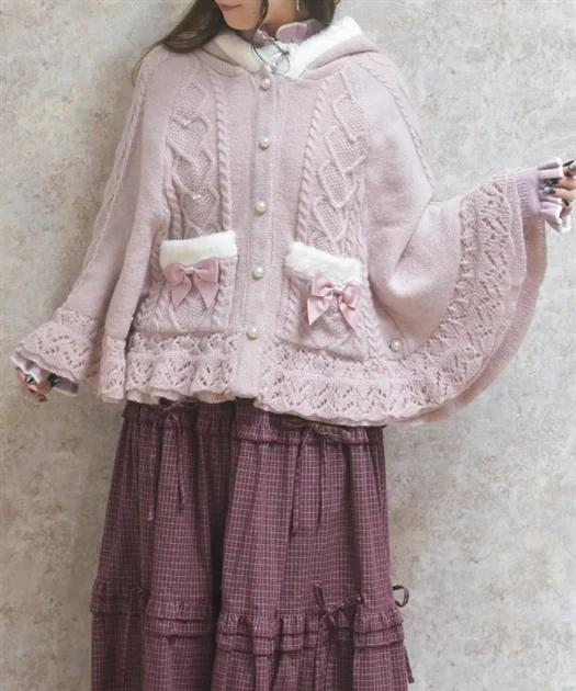 ガーリーコーデにピッタリなニットケープ♡