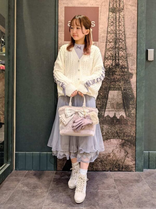 ケーブル編みやファーのアクセントが効いたデザインが、コーデをさらに愛らしく魅せてくれます◎