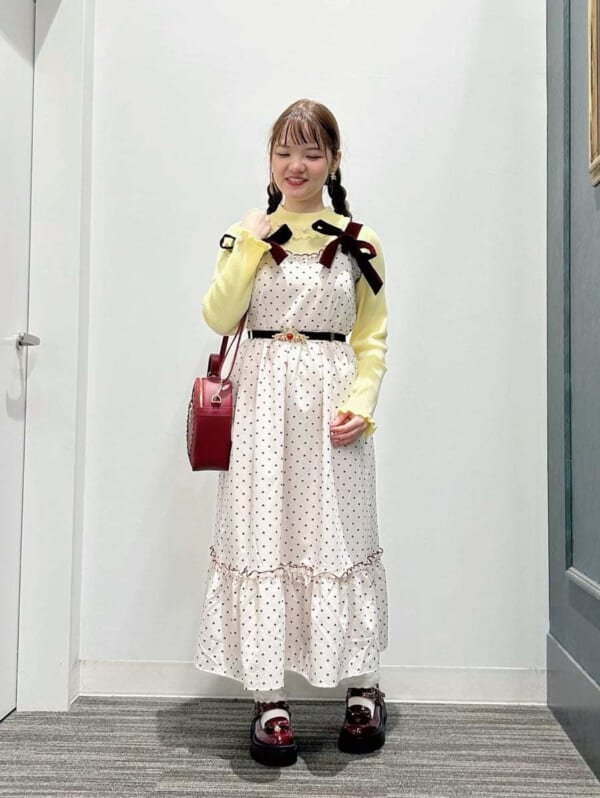 リボンはボタンで取り外しが出来る仕様!リボン結びが苦手な方でも簡単に着られます◎