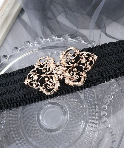 繊細な小花の装飾をあしらったオーナメントモチーフのゴムベルト♡