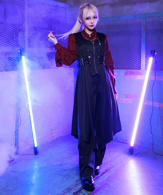 スカートはもちろん、ハーネス付ロングパンツの様な辛口デザインのパンツに合わせても◎
