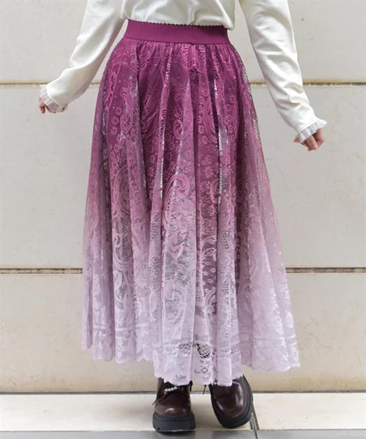 グラデーションが美しい総レースのスカート♡