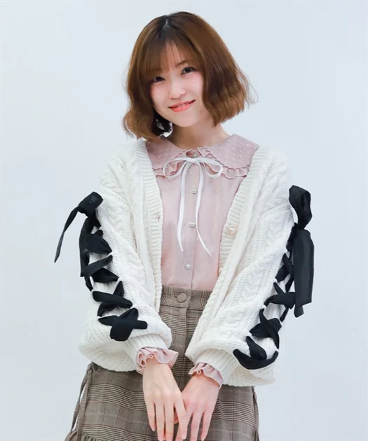 第3位:レースアップモールヤーンカーディガン