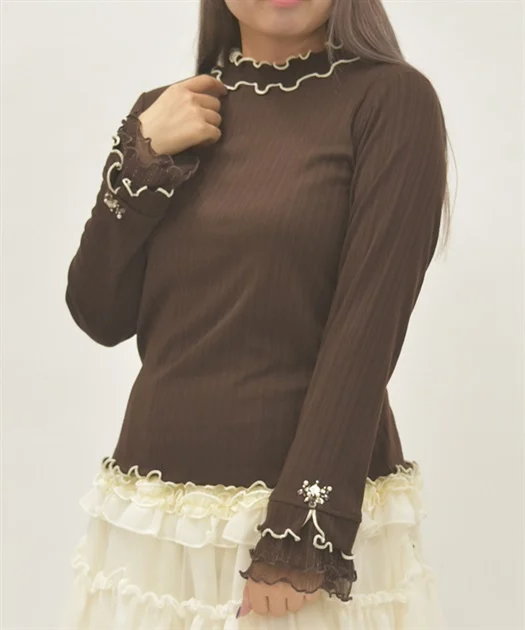 袖口を華やかに彩るキラッしたラメストライプのチュールフリルがポイント