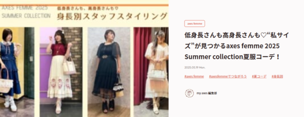 第7位:低身長さんも高身長さんも♡“私サイズ”が見つかるaxes femme 2025 Summer collection夏服コーデ