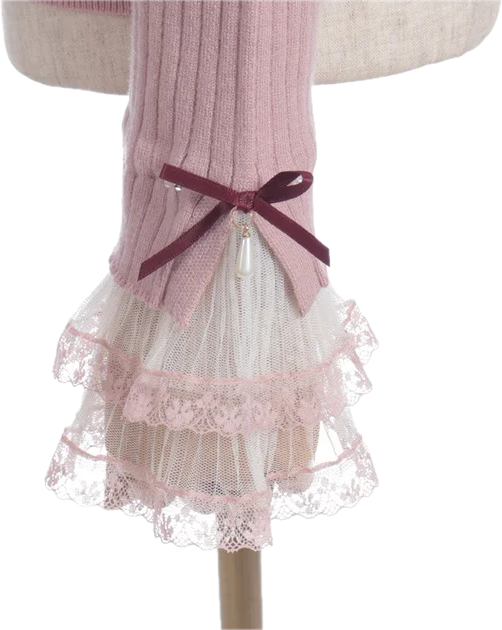 袖口にはリボンとしずく型のパールがあしらわれており、フェミニンな印象に。