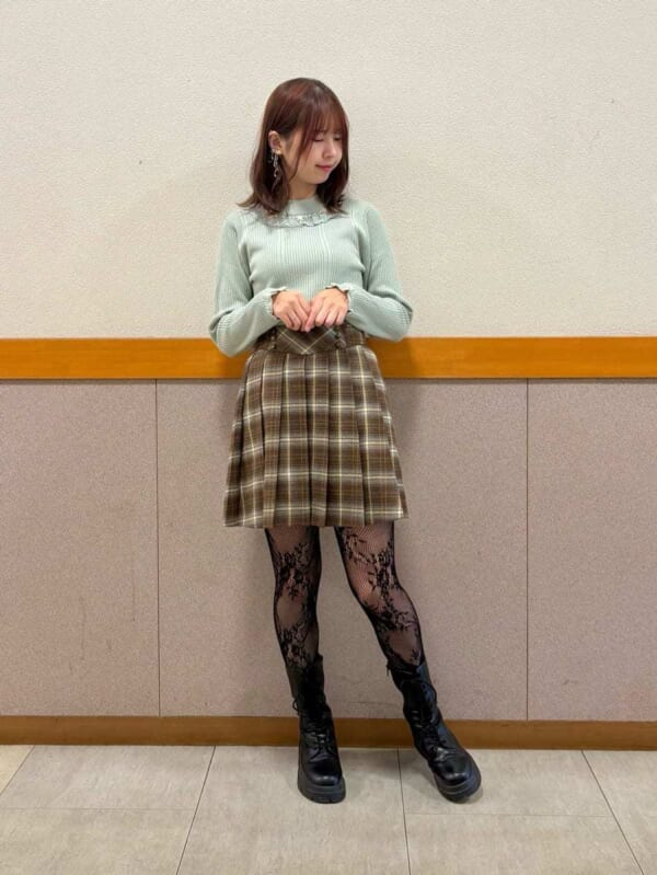 冬らしいアーガイル柄のニットは、この時期1着は持っていると重宝しそうです♪レースタンクをレイヤードしているようなデザインも◎