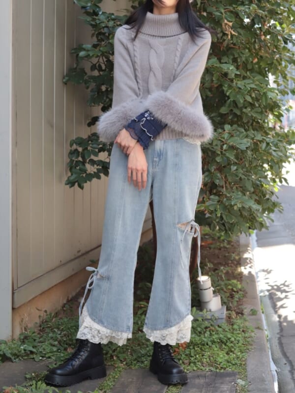 大人気のデニムパンツ&レースパンツを合わせて、フェミニンカジュアルコーデに仕上げました♪