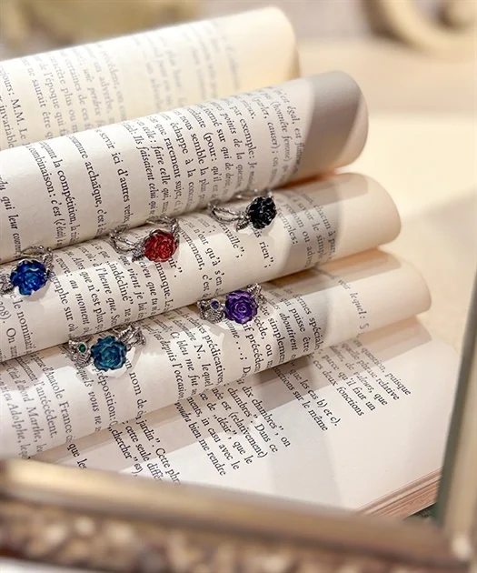 マットな質感が美しいローズモチーフ・ダークカラーローズリング