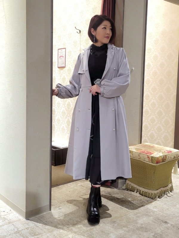さらに、生成りのフード付きトレンチコートを羽織ることで、全体が一気に軽やかに!重くなりがちなブラックスタイルを、春先まで楽しめるバランスに整えています♪