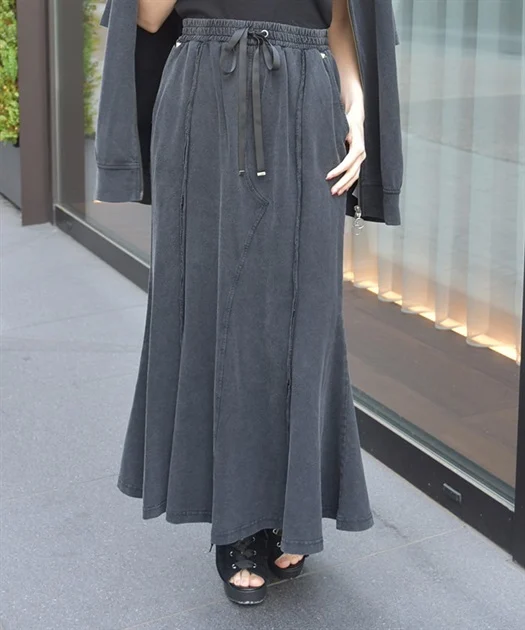 ボトムには、あえてカジュアルな切替スウェットマーメイドスカートを合わせて、きれいめに寄りすぎないバランスに♡