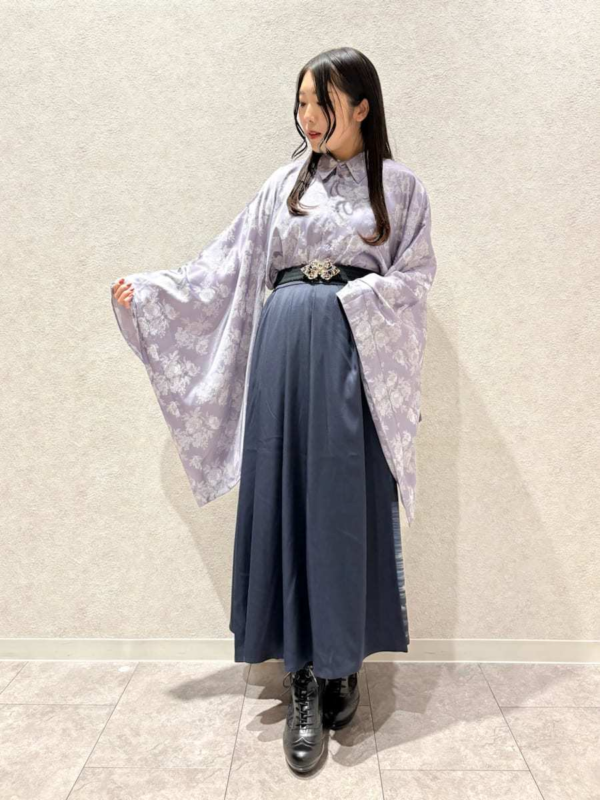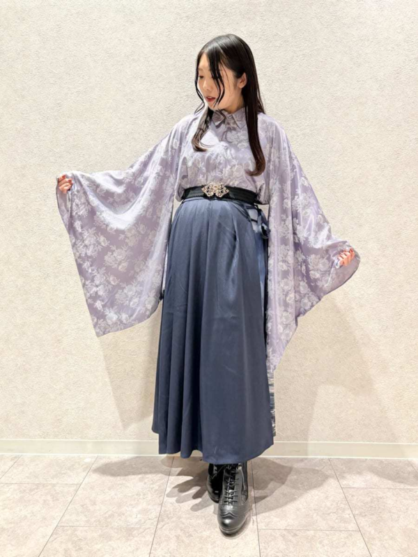 今季のアイテムでは、花柄ジャガード和袖シャツの藤色がおすすめです♪