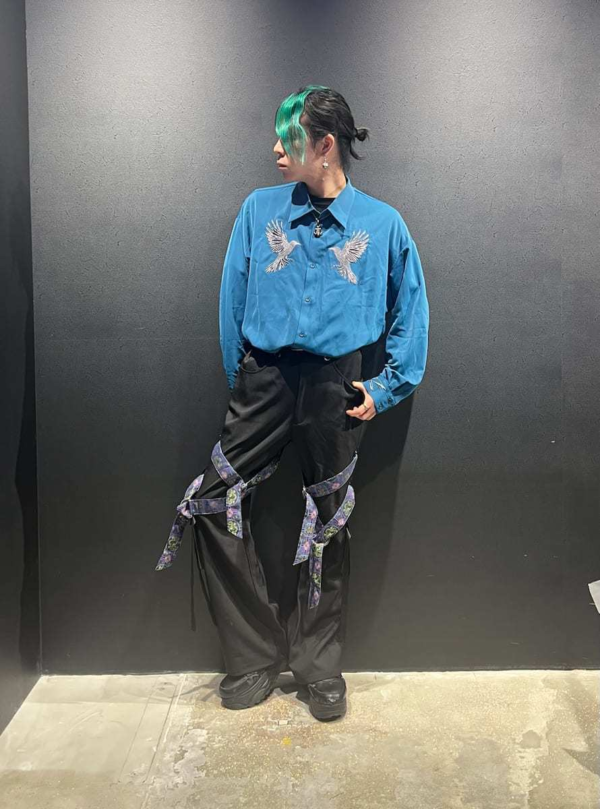 「ダークトーンの装いに新鮮さを加えたい」。そんな方には、鴉刺繍ロングシャツがおすすめです♡