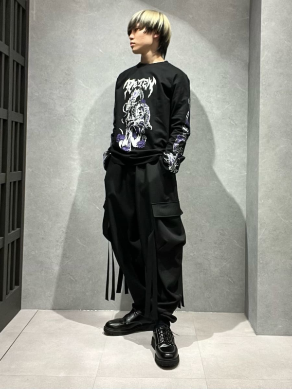 花魁×龍ロンTとカーゴボンタンバルーンパンツの組み合わせコーデです!