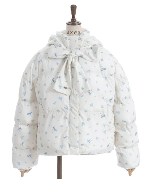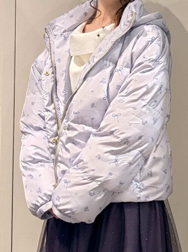 オリジナルの小花柄が目を引く中綿コートは、寒いときの強い味方!