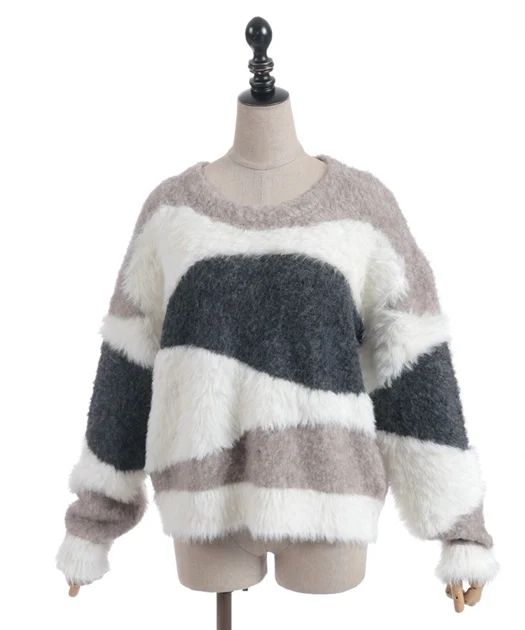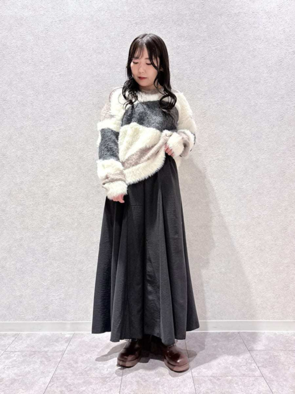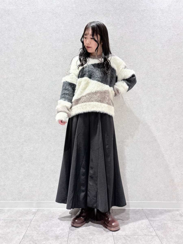 ランダムに切り替えた配色が、大人可愛いムードを演出するふわふわニット♪
