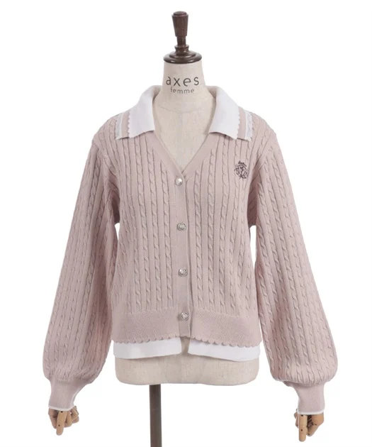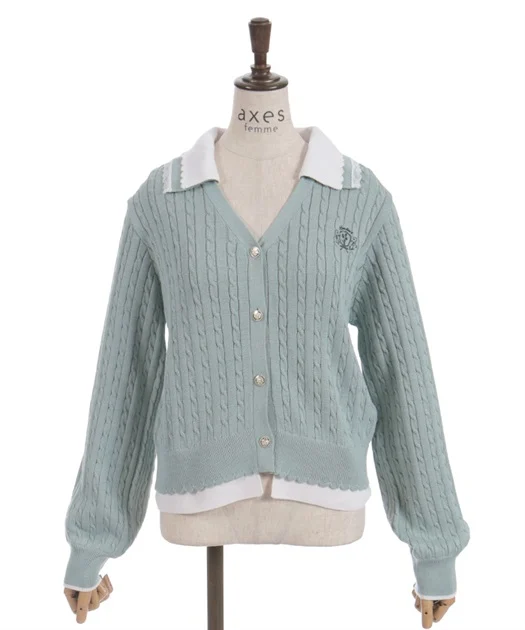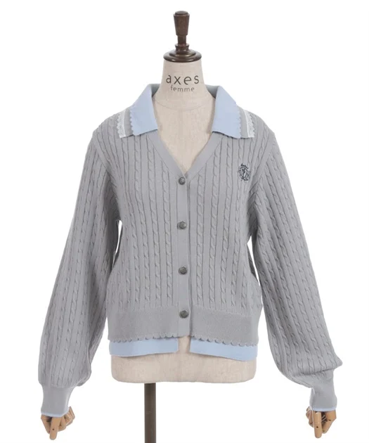 配色切替が目を引く、ポロ風デザインのニットカーディガン♡
