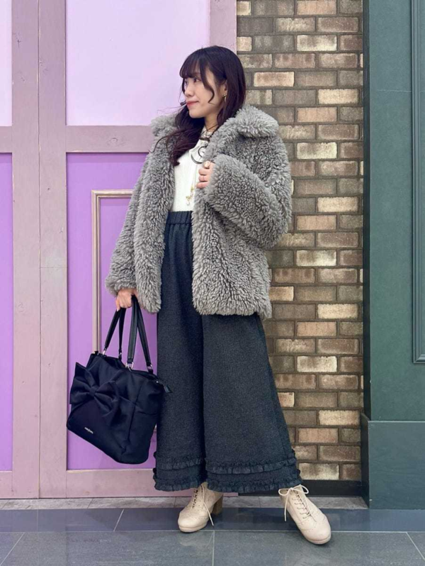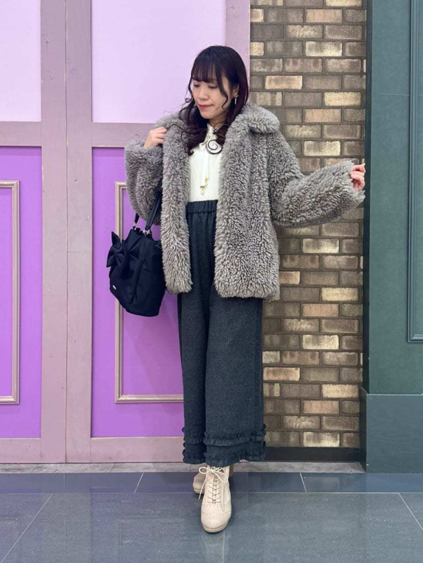 ふんわり広がるシープファーが、コーデを一気に格上げ♪
