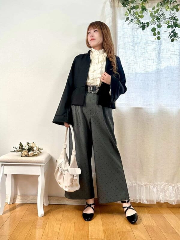 ジャケットの衿付けで可愛くもできるコーデ♡