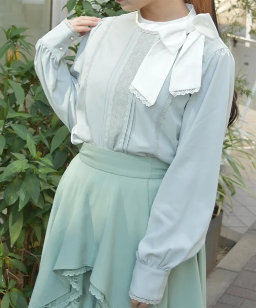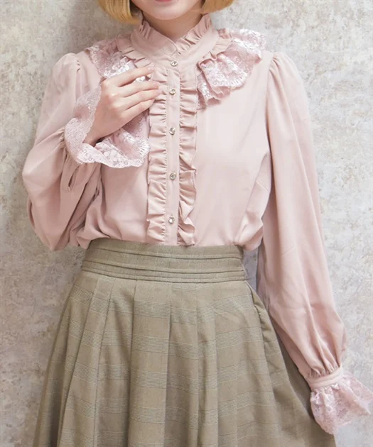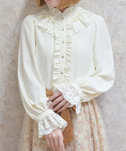 ブラウスは、首元の繊細なフリルが顔まわりを華やかにしてくれるアイテム♪