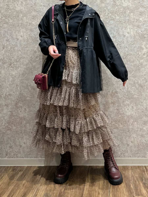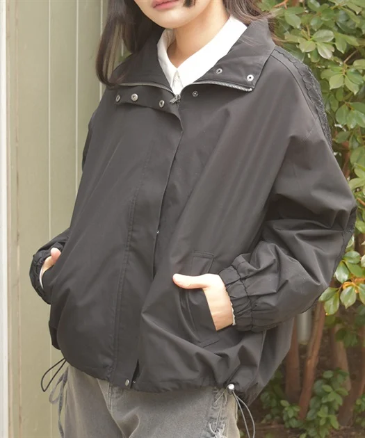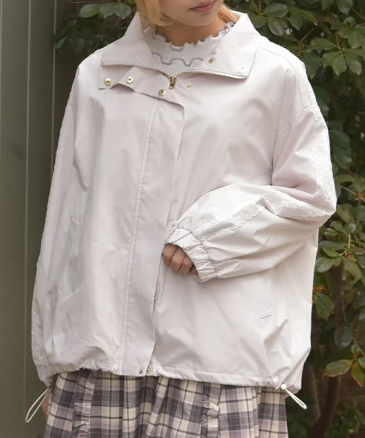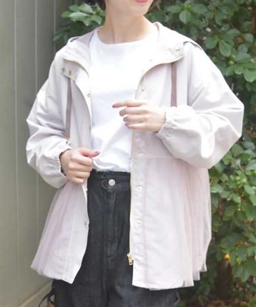 袖山のチュールレースがフェミニンなアクセントになり、カジュアルなブルゾンをぐっと華やかに見せてくれます♪