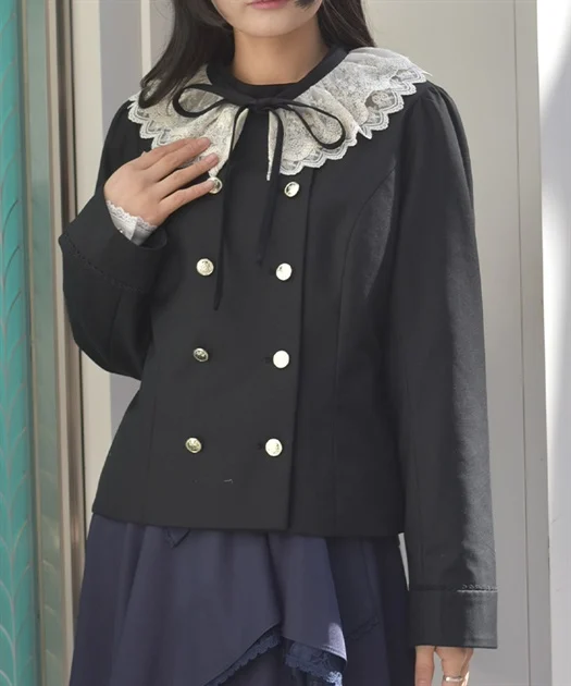 贅沢な2段のチュール刺繍レース襟は、取り外しもOK。外せばスッキリとしたノーカラーになり、シーンに合わせた着こなしが楽しめます♪