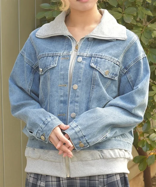 「定番のデニムも、少しだけ遊び心が欲しい♡」そんな気分にぴったりの、異素材使いが新鮮な異素材レイヤードデニムジャケット。