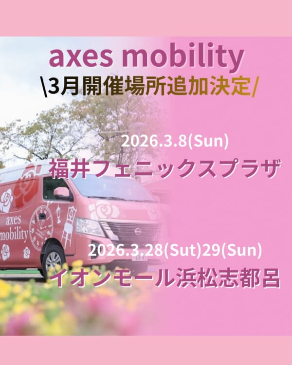 3月のaxes mobilityは、3/8、3/14-15、3/28-29の日程で開催!