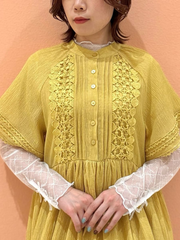 気温に応じて温度調整しやすいアイテムなので上にカーディガンやキャミワンピースなどと合わせていただくのも◎