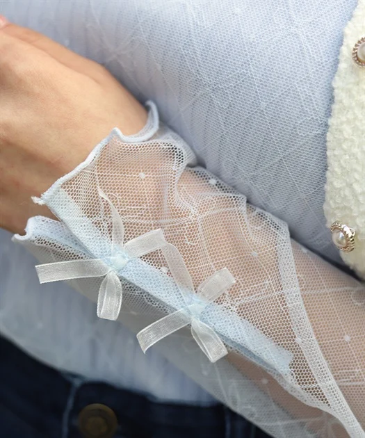 接客の中では、リボン×格子柄のチュールという少し珍しいデザインや、袖口のさりげないリボンの可愛さに惹かれる方が多い印象です♡