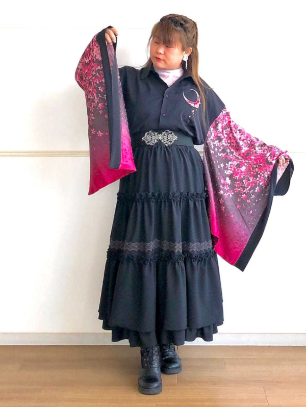 私も桜柄を購入しましたが、同シリーズのワンピースはもちろん、フリルハートロングトレーナーのインナーとしてカジュアルに取り入れるのもおすすめです♡